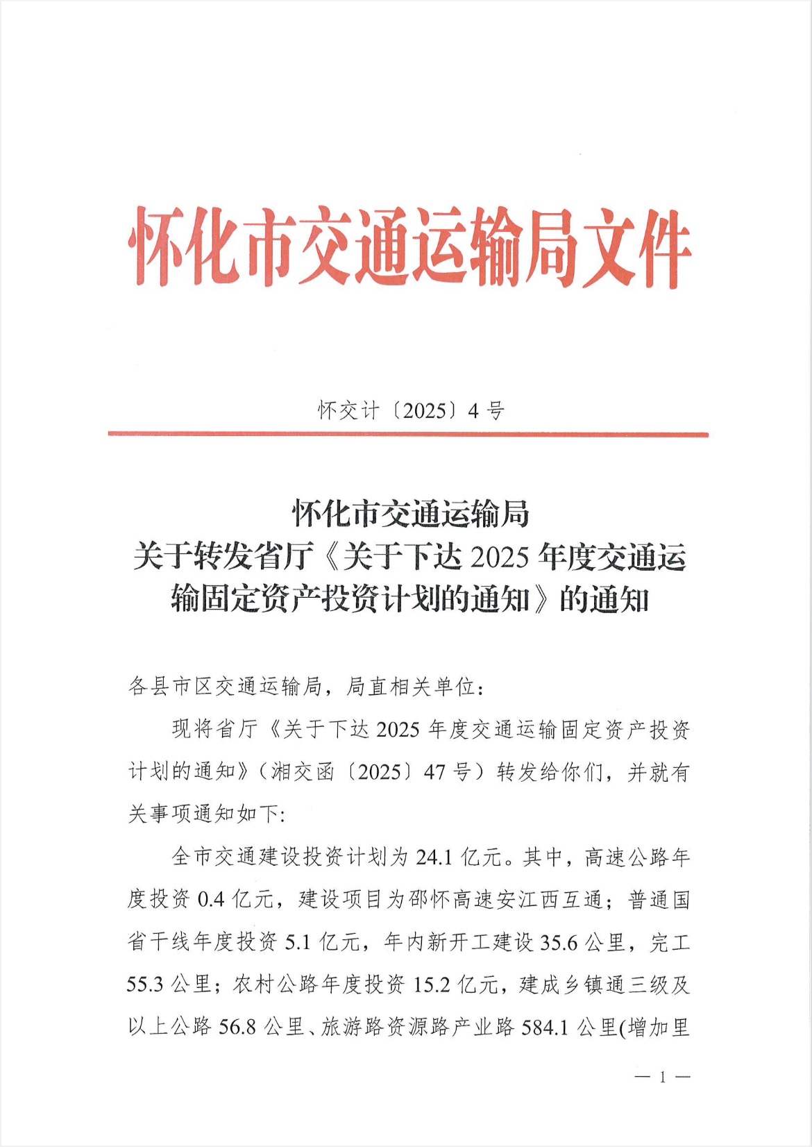 附件:湖南省交通運(yùn)輸廳+關(guān)于下達(dá)2025年交通運(yùn)輸固定資產(chǎn)投資計(jì)劃的通知