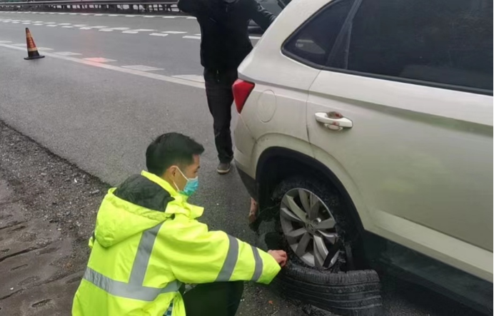 上午9時(shí)許,在G60滬昆高速公路東向西方向K1378+650M處,一輛小車因右后輪爆胎停在應(yīng)急車道上。而司機(jī)沒有換胎經(jīng)驗(yàn),只能在原地干著急。所幸雪峰山管理所巡查人員在巡查過程中及時(shí)發(fā)現(xiàn),并用隨車維修工具迅速幫其換好輪胎。