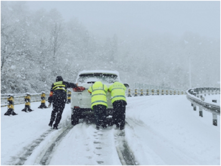 雙江中心大站工作人員推車(chē)一公里,護(hù)送被困車(chē)輛安全駛離高速公路。