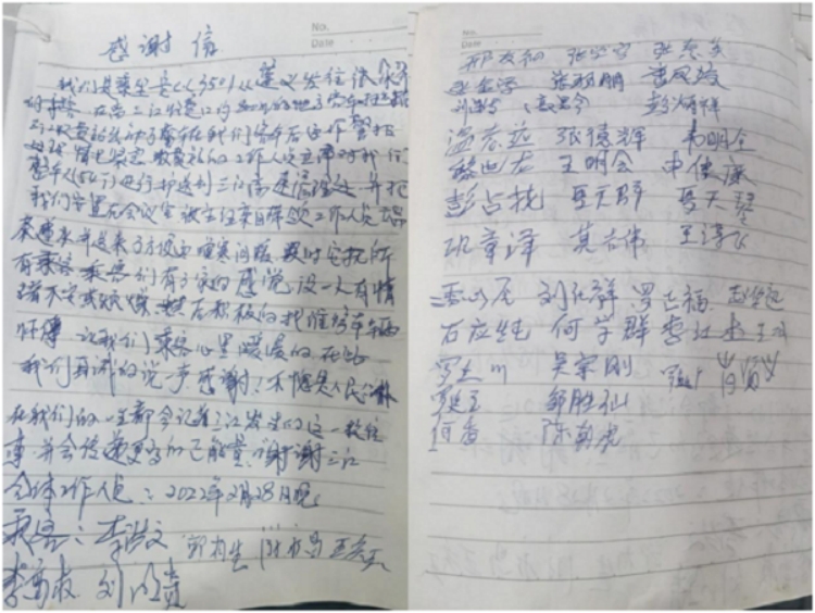 三江管理所、三江中心大站妥善安置57名滯留司乘,收到一封聯(lián)名感謝信。