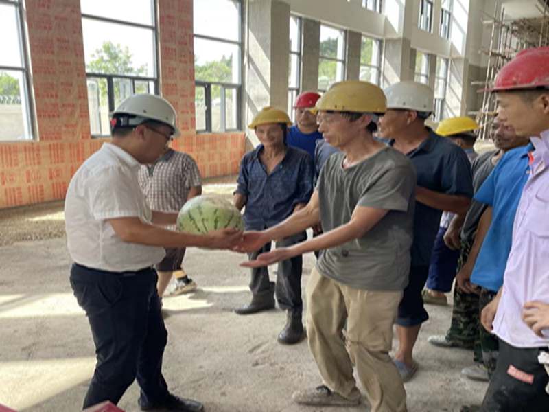 黨委副書記、總經理、支部指導員江中同志為工人送上防暑用品
