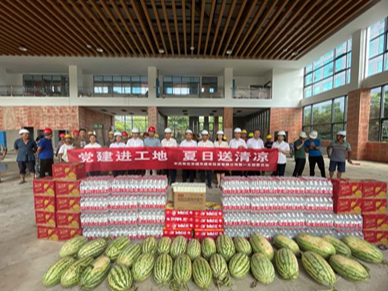 為切實關愛關懷施工一線人員, 7月21日下午,中共懷化市城市建設投資有限公司第一支部委員會組織黨員干部深入在建項目施工現(xiàn)場開展“黨建進工地 夏日送清涼”主題黨日活動。給在高溫下工作的一線建筑工人們送去了礦泉水、西瓜、紅牛、藿香正氣水等防暑降溫物資。