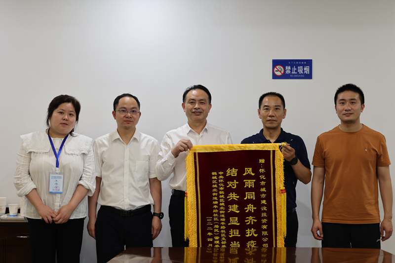 4月28日,懷化市鶴城區(qū)城北街道瑞豐路社區(qū)黨支部書記、居委會主任趙東升攜社區(qū)工作人員來到懷化市城市建設(shè)投資有限公司,送上了“風(fēng)雨同舟齊抗疫、結(jié)對共建顯擔(dān)當(dāng)”錦旗,以此感謝市城建投公司廣大志愿者自2020年疫情以來對社區(qū)提供的志愿幫扶,表達(dá)了對市城建投黨員干部在疫情防控期間表現(xiàn)出優(yōu)良工作作風(fēng)的敬佩與贊賞。