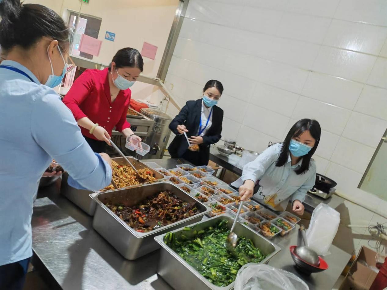 面對疫情變化,公司食堂工作人員出行受限,眼看國資系統(tǒng)抗疫人員,市城建投公司、市交建投公司包保社區(qū)志愿者、醫(yī)務(wù)人員和駐守大本營的守護(hù)者用餐無法保證時,市城建投公司領(lǐng)導(dǎo)率先垂范,帶領(lǐng)“大本營”守護(hù)者們走進(jìn)食堂,紛紛化身洗菜工、切菜員、廚師、打菜員……自己動手,煮飯炒菜,打包送餐?!皠傞_始挺怕,壓力也大,頭一回用大型的廚房設(shè)備,挑戰(zhàn)兩三百人的用餐,心里在打鼓,怕操作不當(dāng),耽誤大家就餐,怕味道不好等,還是大家的鼓勵和齊心協(xié)力,讓我們圓滿完成任務(wù)?!焙笄诒U辖M工作人員笑道,“掌勺不易,還好最后大家都挺滿意”。