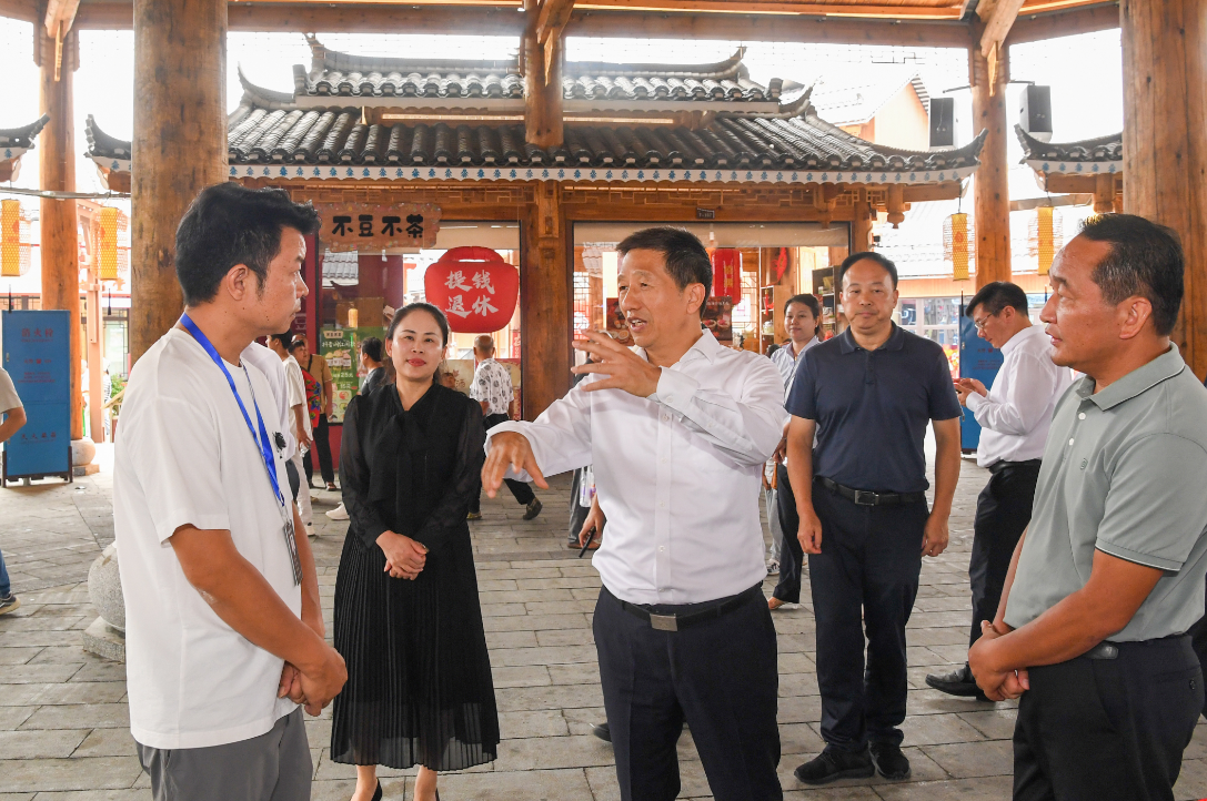 (許忠建在榆樹灣現(xiàn)場檢查假期旅游市場服務(wù)保障情況,與經(jīng)營業(yè)主交流,了解旅游消費(fèi)情況,聽取意見建議。以上照片均由懷化日?qǐng)?bào)全媒體記者 楊智偉 攝)