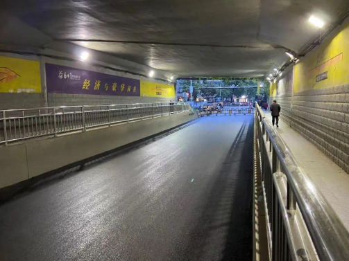 懷北路鐵路涵洞是城北區(qū)域進(jìn)出城區(qū)的重要通道,此前涵洞建設(shè)時(shí)未配套安裝排水設(shè)施,加之鐵路涵洞頂部漏水,涵洞內(nèi)積水無法及時(shí)排除,瀝青路面長期受到雨水侵蝕,瀝青路面出現(xiàn)破損、擁包、跑砂等病害,尤其是幾處路面破損面積較大,兩側(cè)車道整體縱向出現(xiàn)車轍坑槽、坑洞,嚴(yán)重影響行車安全。此次修復(fù)施工后,路基路面坑槽、破損均已修復(fù),且已在涵洞兩側(cè)設(shè)計(jì)坡度以便涵洞內(nèi)車行道內(nèi)雨水排出。